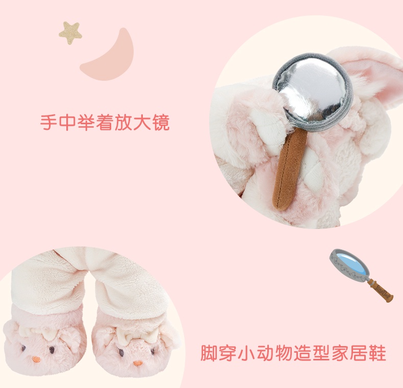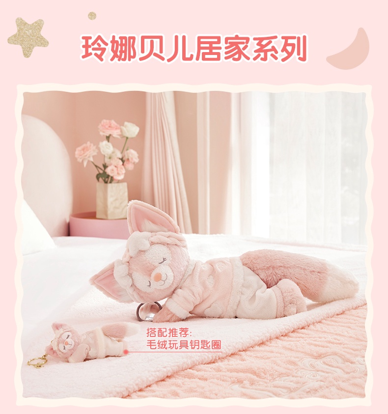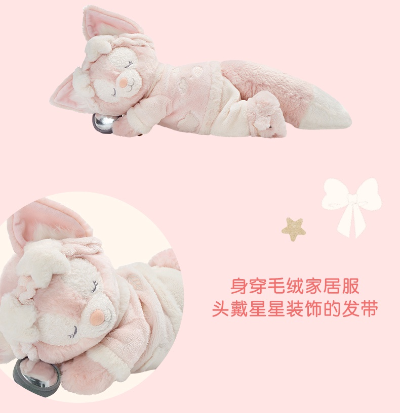 可爱的玲娜贝儿换上舒适的睡衣,戴着软软的发带